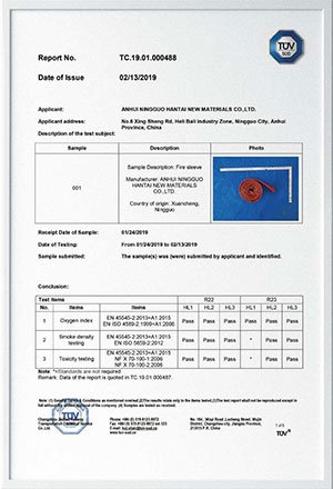 • Product Certifications: CE, REACH, RoHS, UL1441, EN45545-2, MSHA, IEC60332-1-2, DIN5510-2, IEC 60331-2