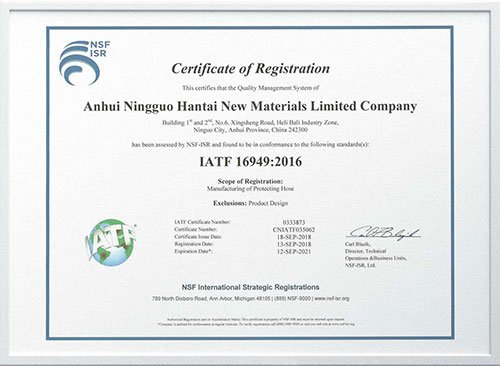 Hantai adheres to strict production management and quality control policies, certified with IATF 16949, ISO 9001, ISO 45001, and ISO 14001 for our management systems. We also hold product certifications including CE, REACH, RoHS, UL1441, EN45545-2, MSHA, IEC60332-1-2, DIN5510-2, and IEC 60331-2, ensuring every product meets global industry standards for quality and safety.